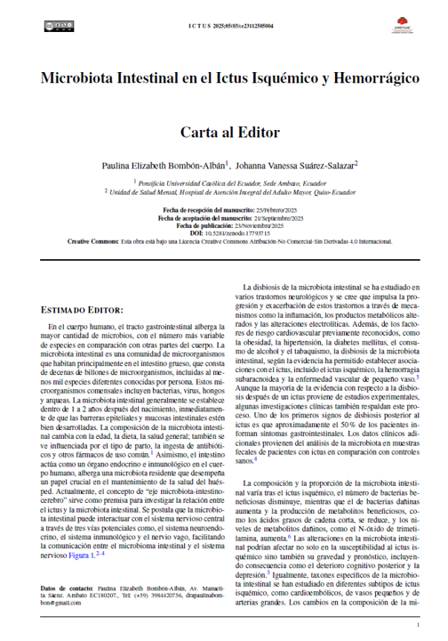 Carta al editor sobre "Microbiota Intestinal en el Ictus Isquémico y Hemorrágico" publicada en el volumen 5, número 3 de ICTUS.